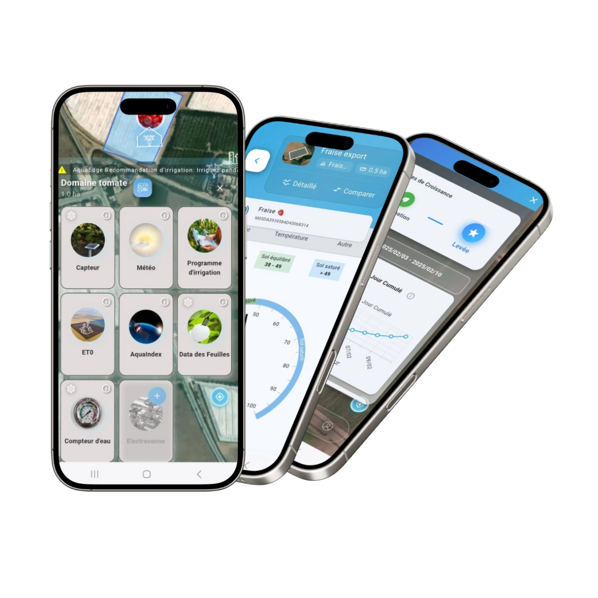 AquaX permet d’éviter le stress hydrique des plantes et la salinité du sol, deux facteurs nuisant au rendement. Il anticipe les risques et permet de prendre les mesures préventives nécessaires.