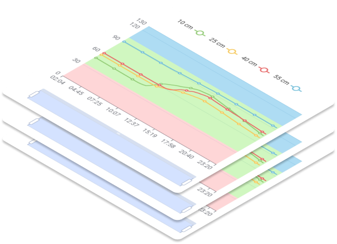 AquaX permet une surveillance constante de l'humidité du sol à différentes profondeurs, offrant ainsi une vision précise de l'état du sol dans vos parcelles.